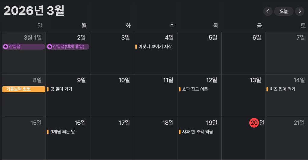 이유식 변환 시기나 병원 방문 일정, 문센 데이 같은 일상적인 스케줄도